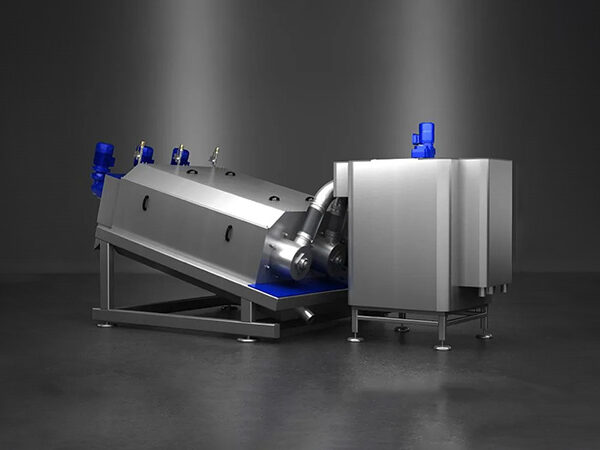 Prasa śrubowo talerzowa, w pełni automatyczna, pozwalająca na odwadnianie osadów, wykonana ze stali kwasoodpornej.